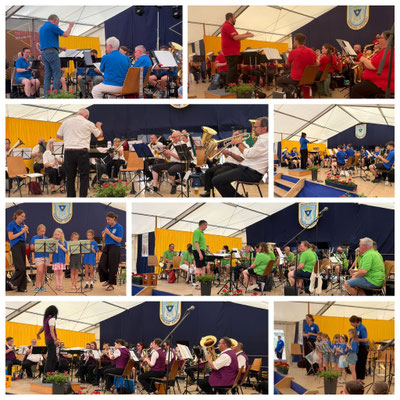 Der Musikverein Langenbrücken feierte am vergangenen Wochenende sein 100-jähriges Jubiläum. Acht Musikvereine zogen bei einem Sternmarsch auf dem Platz vor dem Festzelt ein und auch unsere Musikerinnen und Musiker gruppierten sich zu ihren jeweiligen Registern als großes Orchester mit ca. 300 Musikerinnen und Musikern. Mit bekannten Märschen und Polkas und einem imposanten Klangkörper wurden die Festgäste bestens unterhalten.